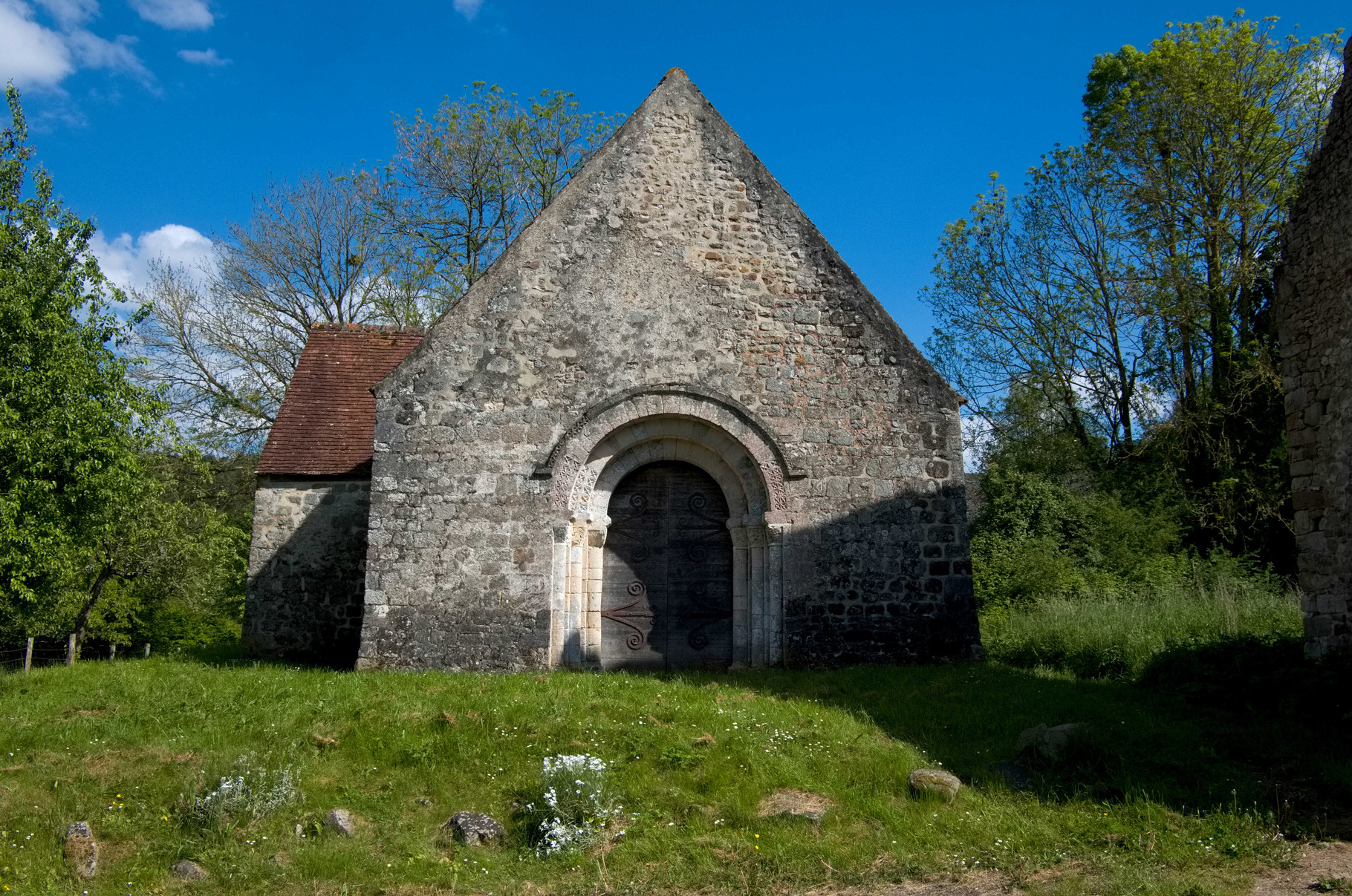 La majeure partie de l’édifice est daté du XVIIIe siècle. Il a été reconstruit par un maçon du village, qui a conservé le portail du XIe siècle en le réinsérant dans l’édifice. Composé de six chapiteaux sculpté en bas relief, c’est un des plus beau témoignages de l’art Roman normand que l’histoire nous ait laissé dans l’Orne.