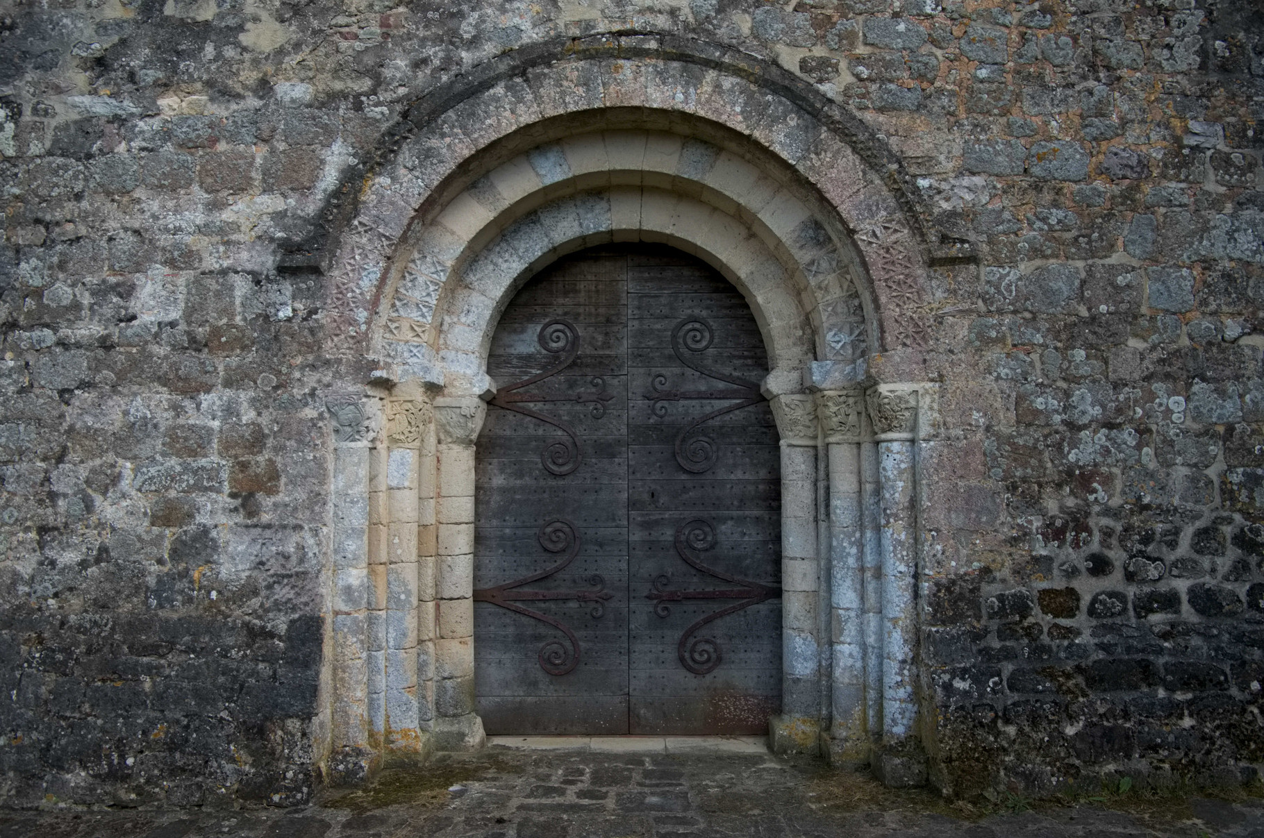 Il s’agit du portail du prieuré Saint-Pierre, construit vers 1090 à la Lande-de-Goult et plus précisément de ses chapiteaux.